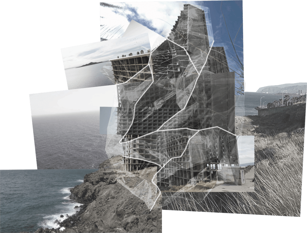 En la costa de Tenerife, a tan solo unos metros del mar se eleva esta estructura eternamente vacía, siendo un claro caso de la necesidad de replantear la relación del ser humano con el medio.