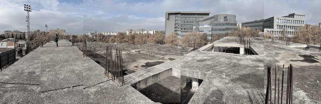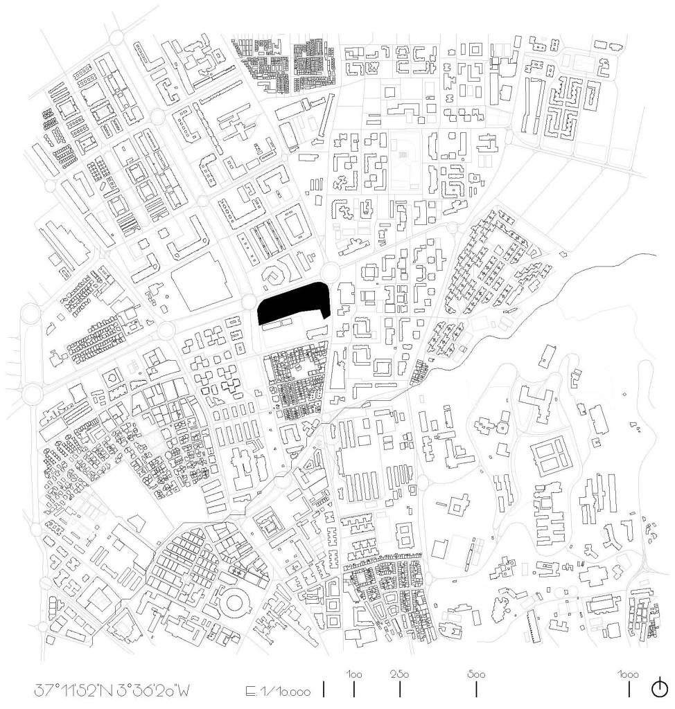 La propuesta se plantea como una solución al problema espacial generado en la parcela conocida como “Granada 92” por una estructura de hormigón armado en estado de abandono.