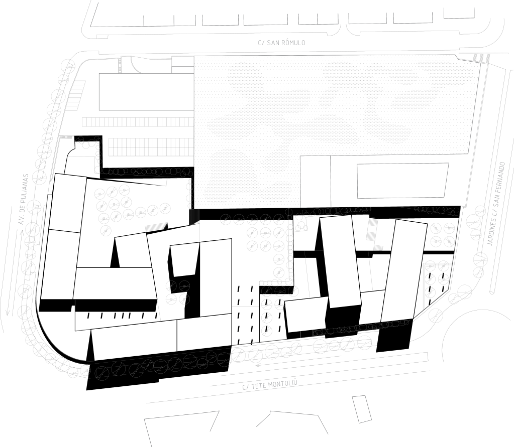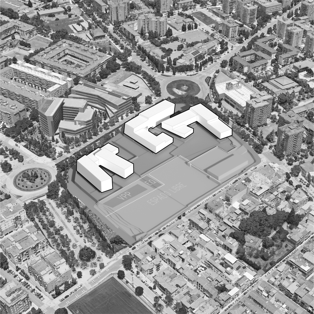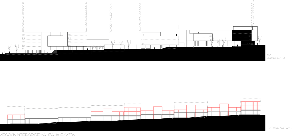 Esta metodología es una contraposición de la trama urbana existente, acentuando la necesidad de regeneración de la zona.