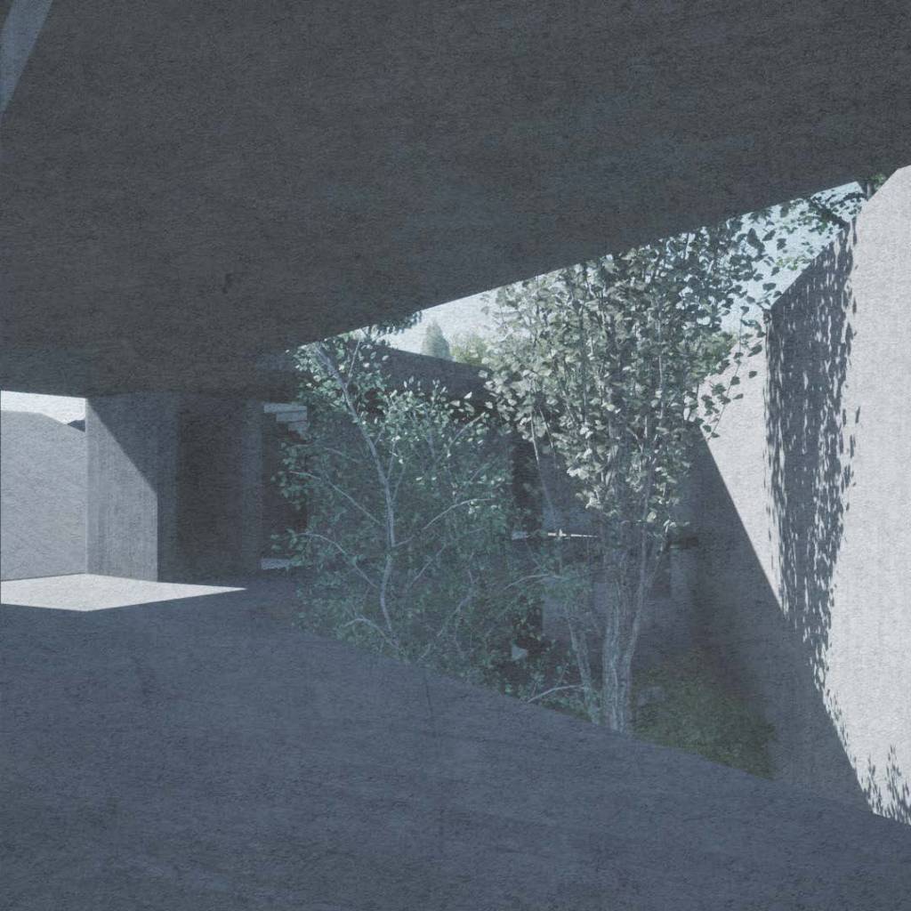 La existencia de una cimentación abandonada se presenta como una oportunidad y un problema, por lo que el proyecto se basa en el gesto de salir de un espacio confinado y romper con una barrera preexistente. Esta situación permite el solucionar varios problemas con una única intervención.