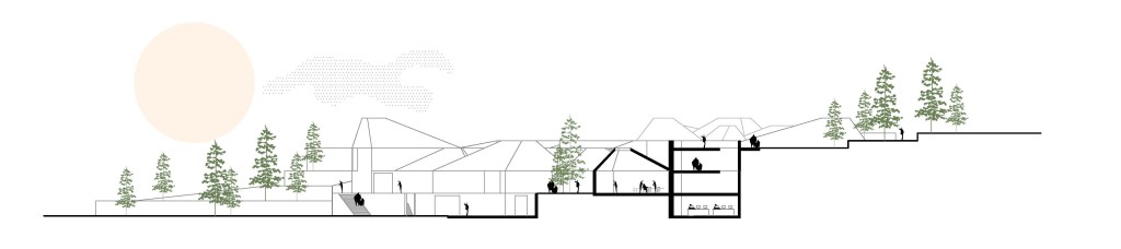 El programa se estructura como una serie de pieza anexas que se conectan en unos núcleos. Estos les proporcionan una circulación de personas, aire y luz, pudiendo así aprovecharse los metros enterrados por la topografía.
